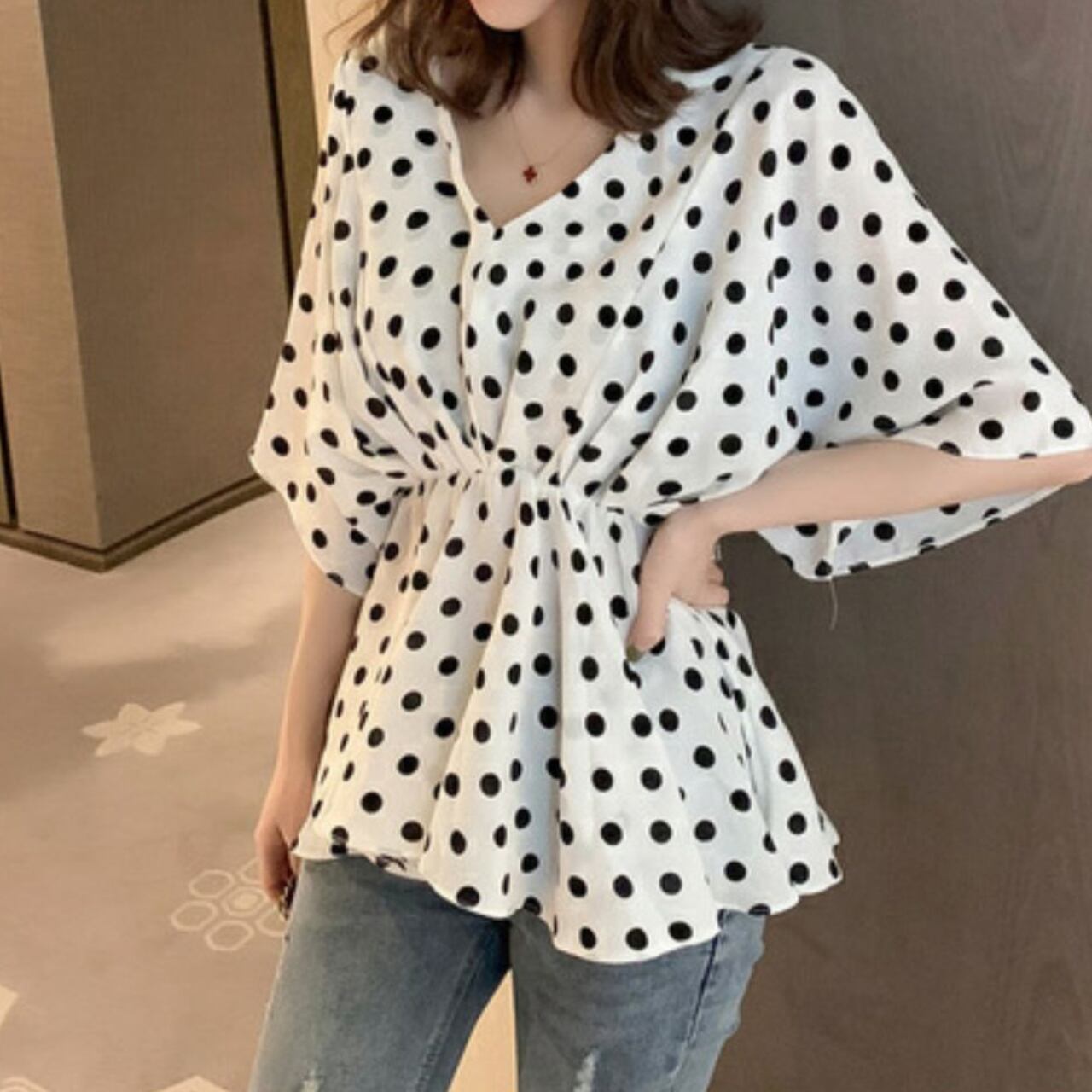 華やかな水玉柄が気分も華やかにしてくれるブラウスは、オフィスからデートまで幅広いシーンで活躍します。Vネックラインがデコルテを美しく見せ、軽やかな風を感じさせる一枚です。透け感が女性らしさを引き立て、シフォン素材だからこそ叶う涼し気な着心地も魅力。あなたの日常に華を添える、特別な一枚になること間違いなしです。