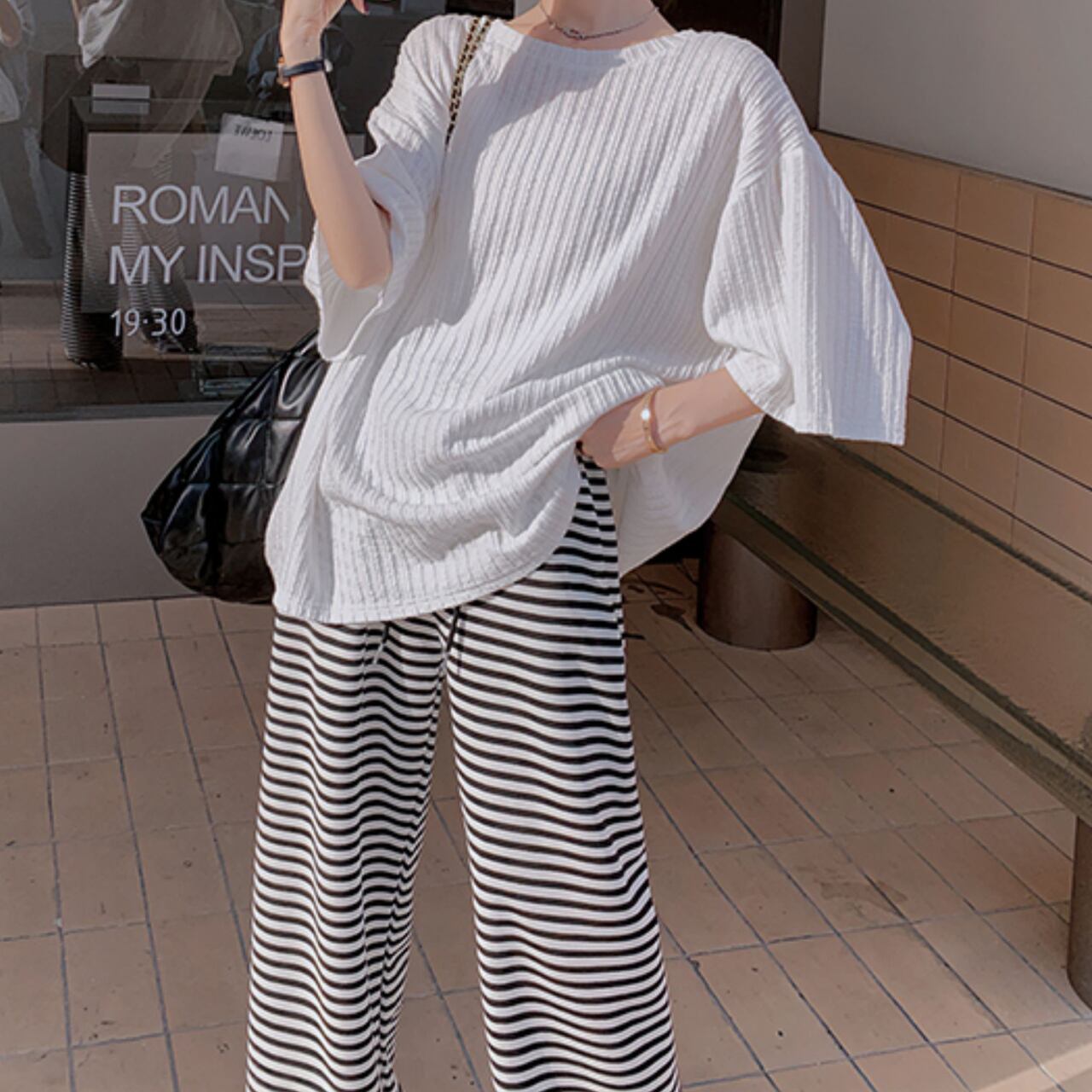 サマーニット×ストライプワイドパンツ M00008