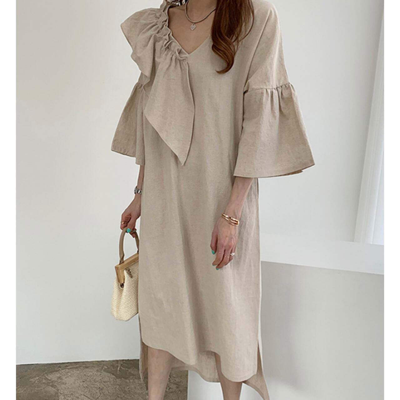 袖フリルワンピース M00018