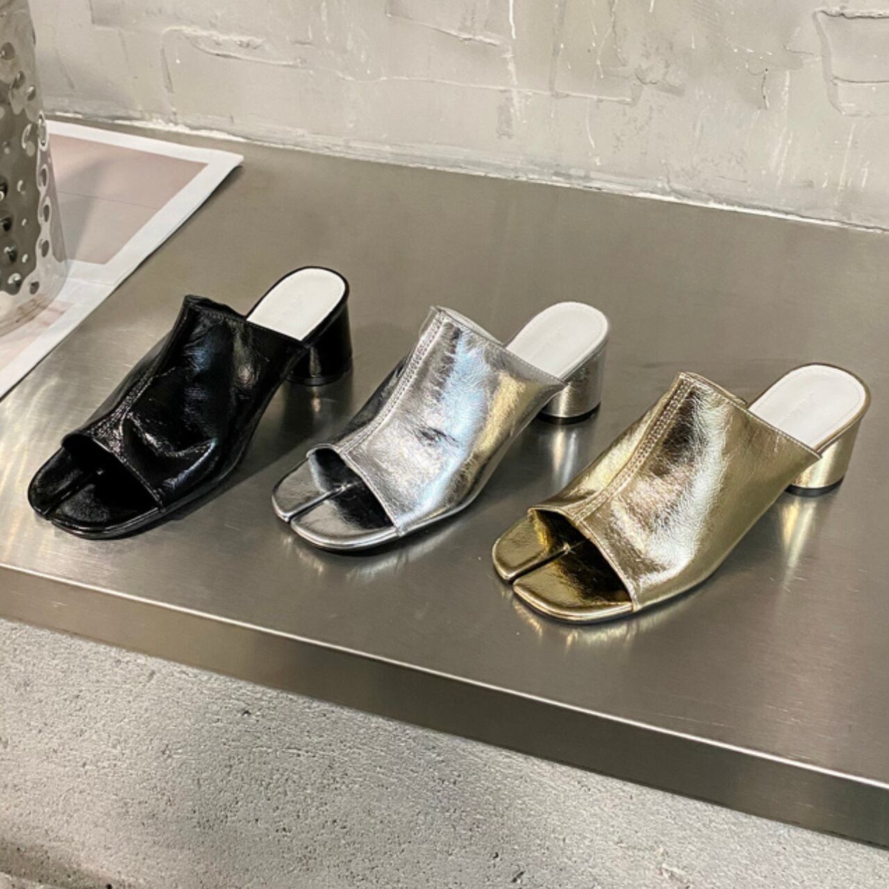 チャンキーヒールオープントゥ足袋サンダル M00048