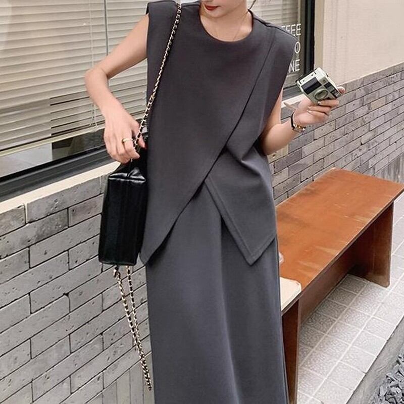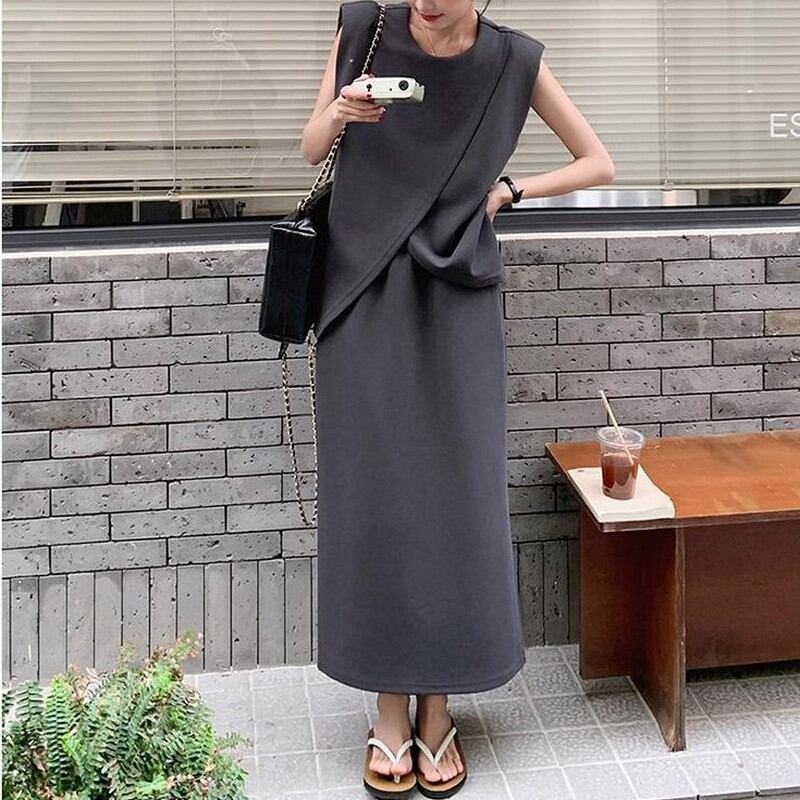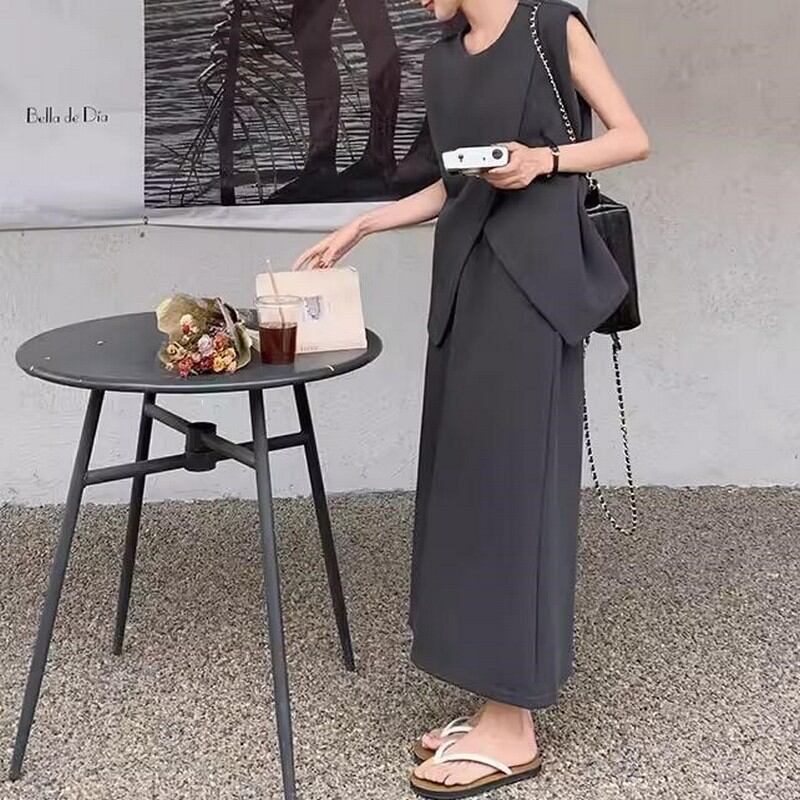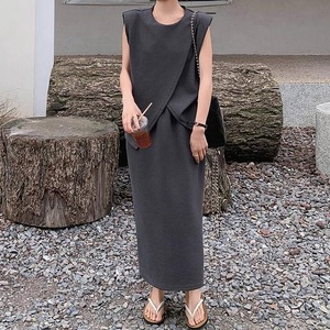 ノースリーブデザイントップス×タイトロングスカート M00057