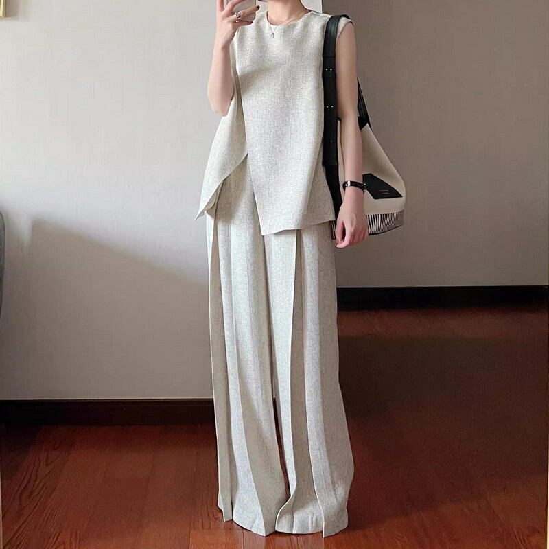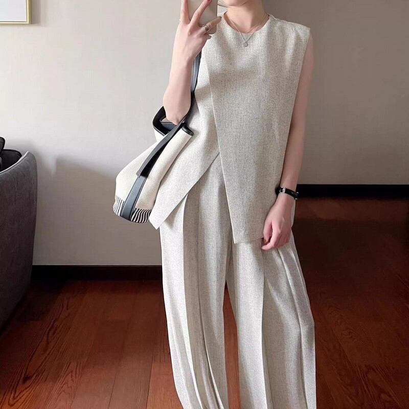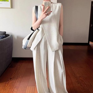 スリットノースリーブベストトップス+ワイドパンツ M00062