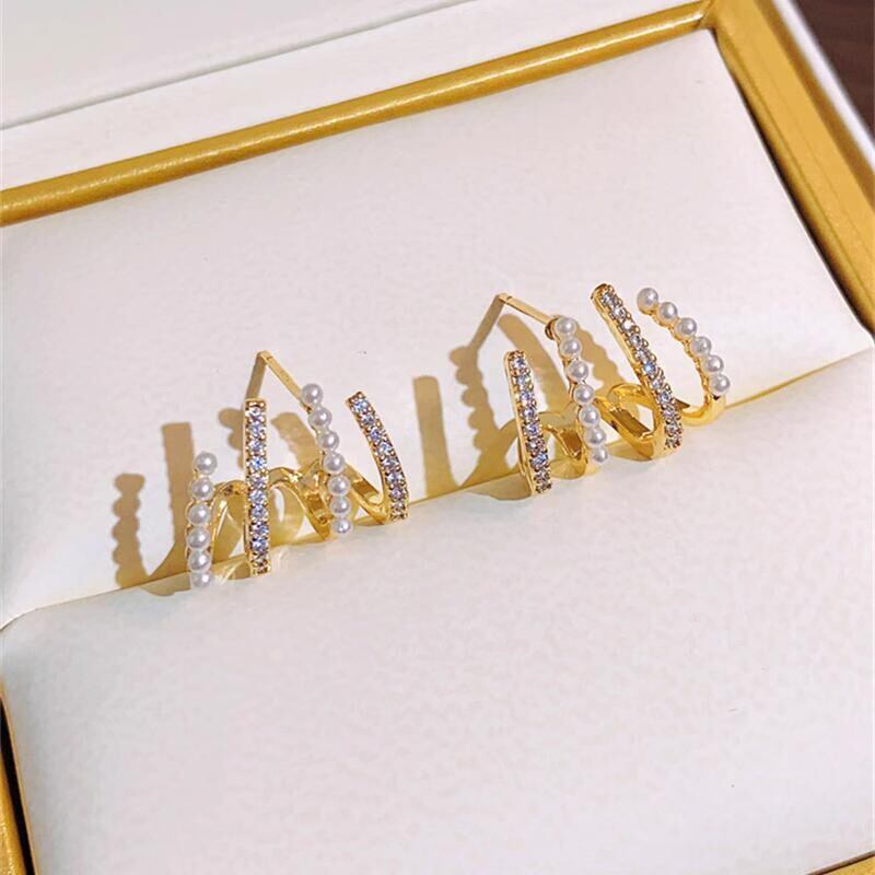 4連風パール×ラインストーンピアス M00100