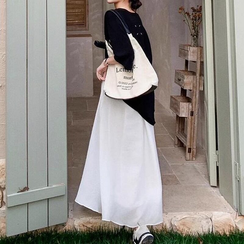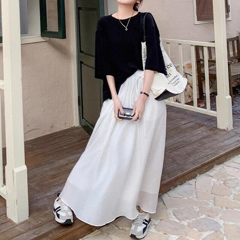 五部袖Tシャツ×ロングスカート2点セット M00137