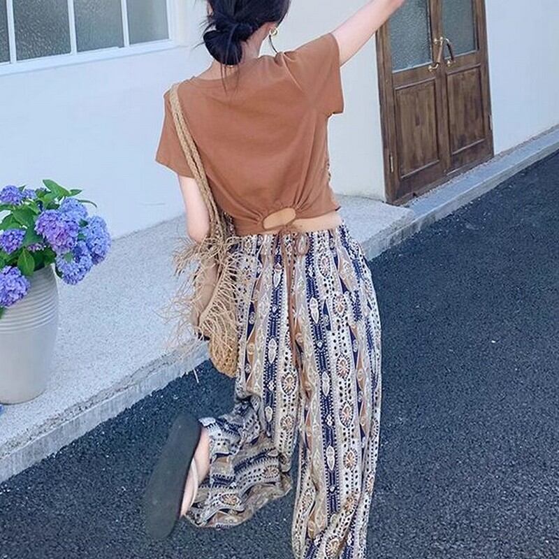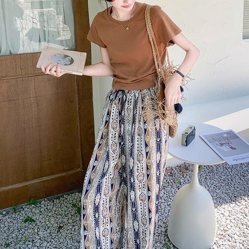 Tシャツ×柄ワイドパンツ2点セット M00136
