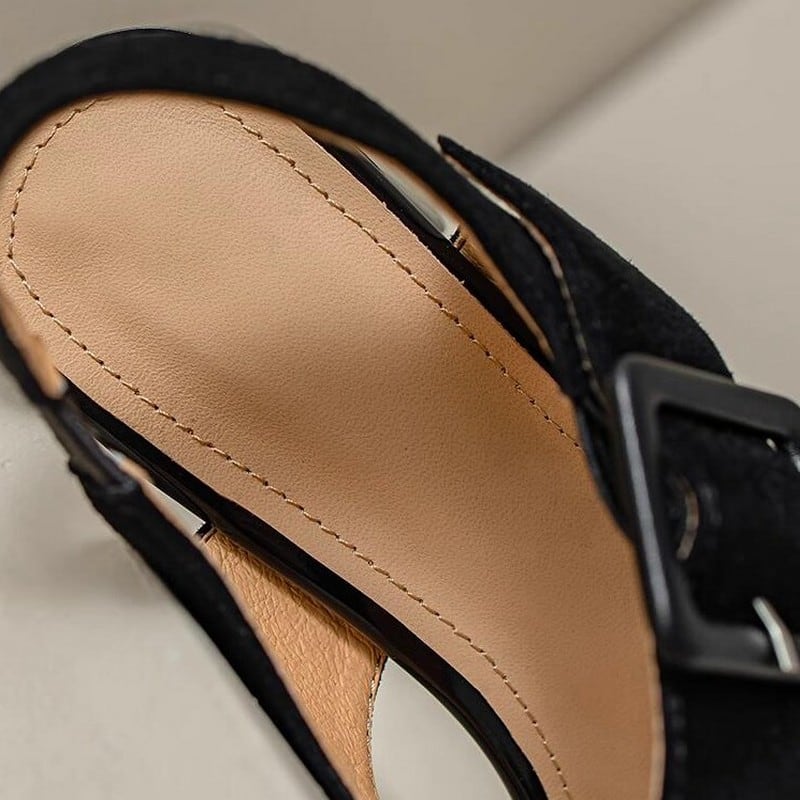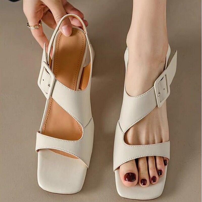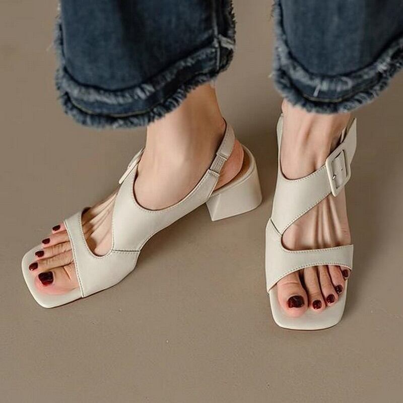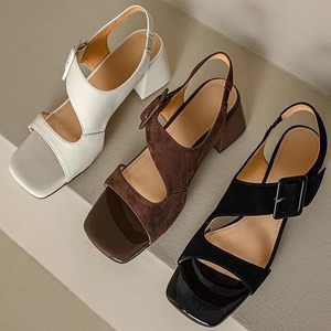 スクエアトゥ太ヒールサンダル M00112