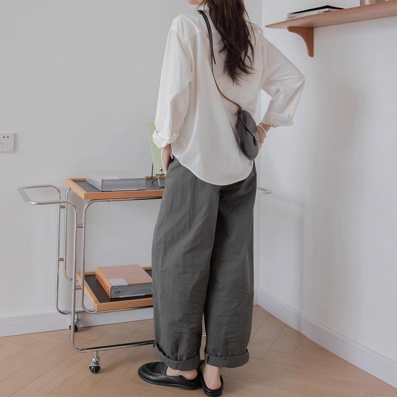 M ウエスト:68cm ヒップ:113cm 太もも:65cm 総丈:104cm 裾幅:51cm