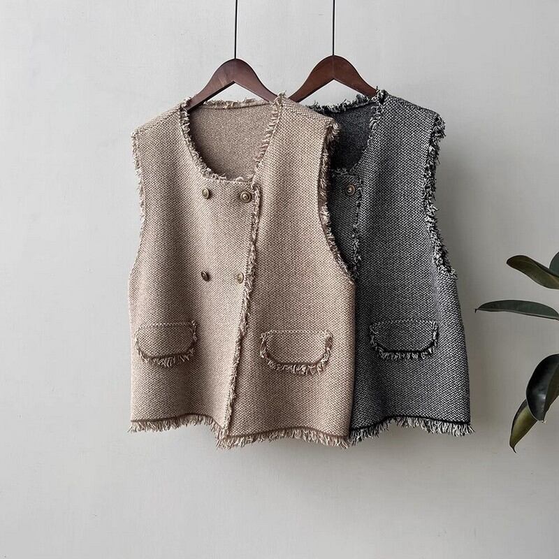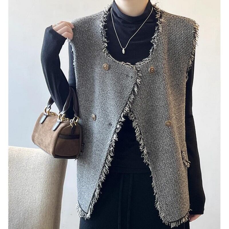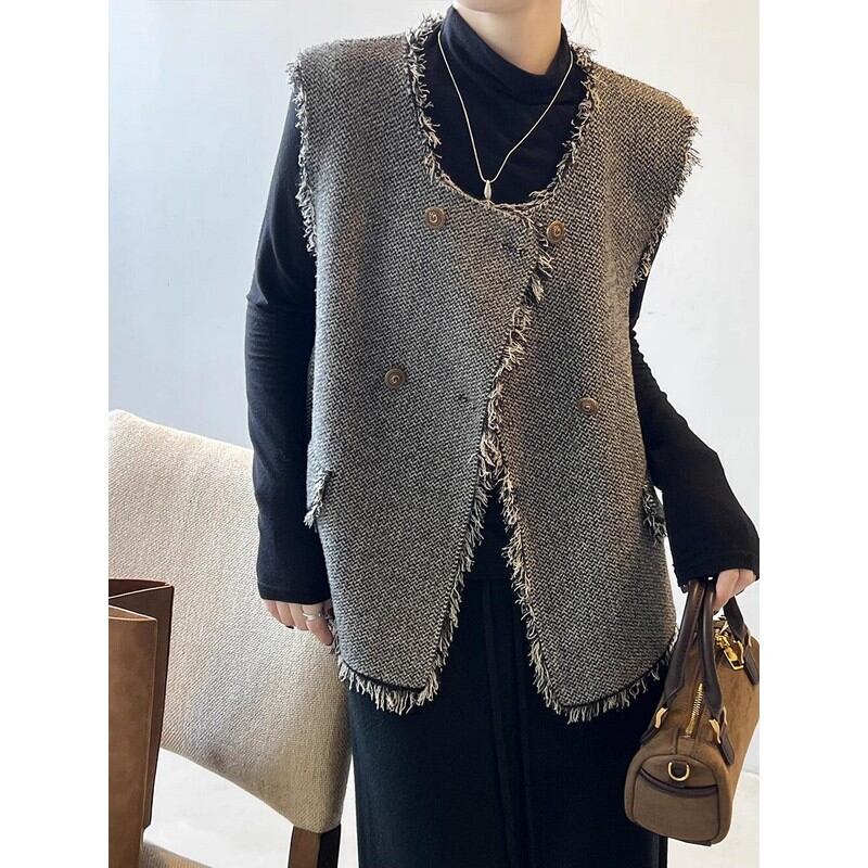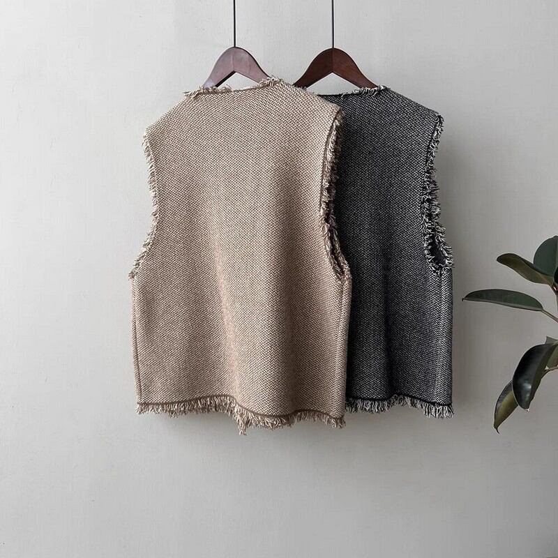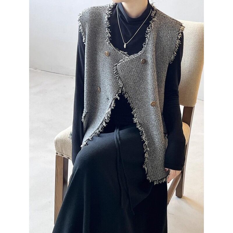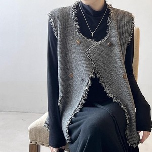 ツイード調フリンジベスト M00246