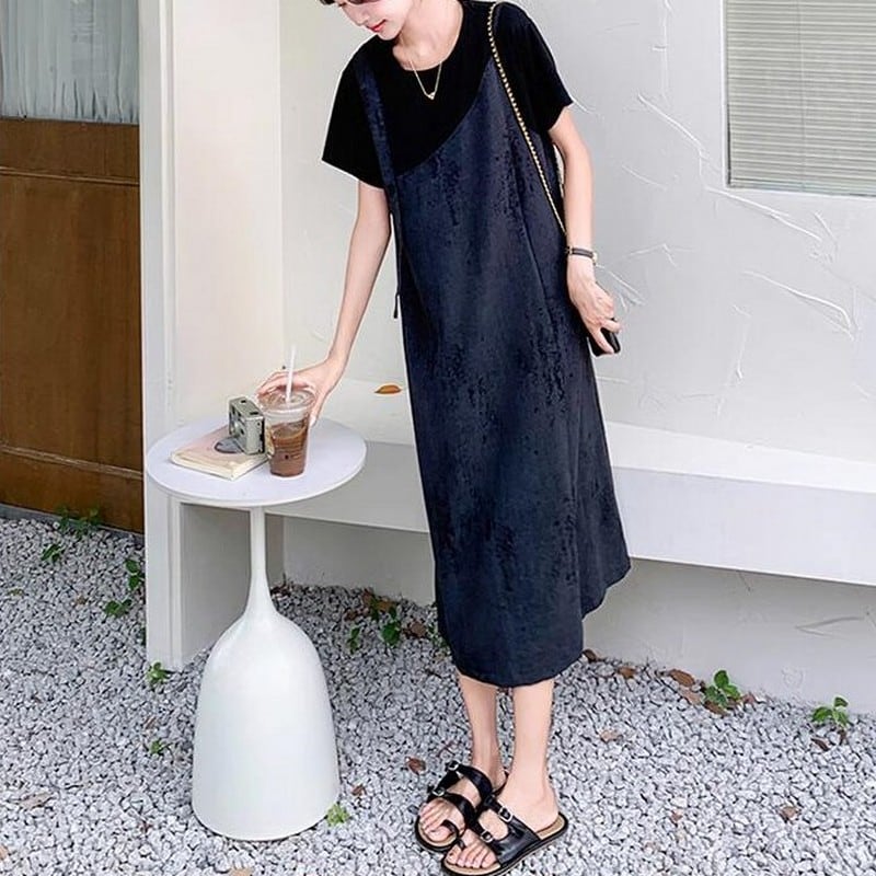 Tシャツ×アシメキャミワンピース2点セット M00208