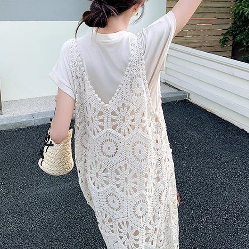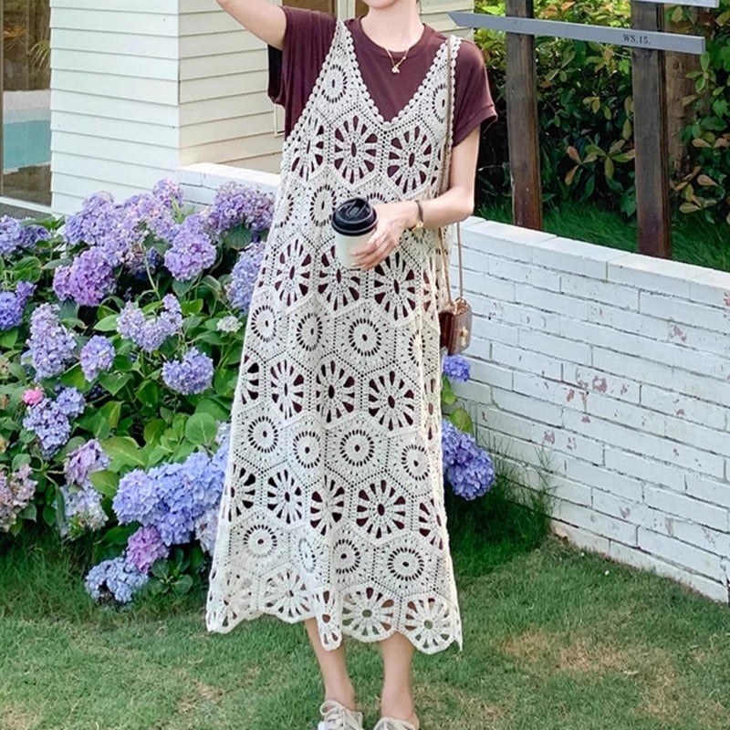 Tシャツワンピ×かぎ針編み風ワンピセットアップ M00207